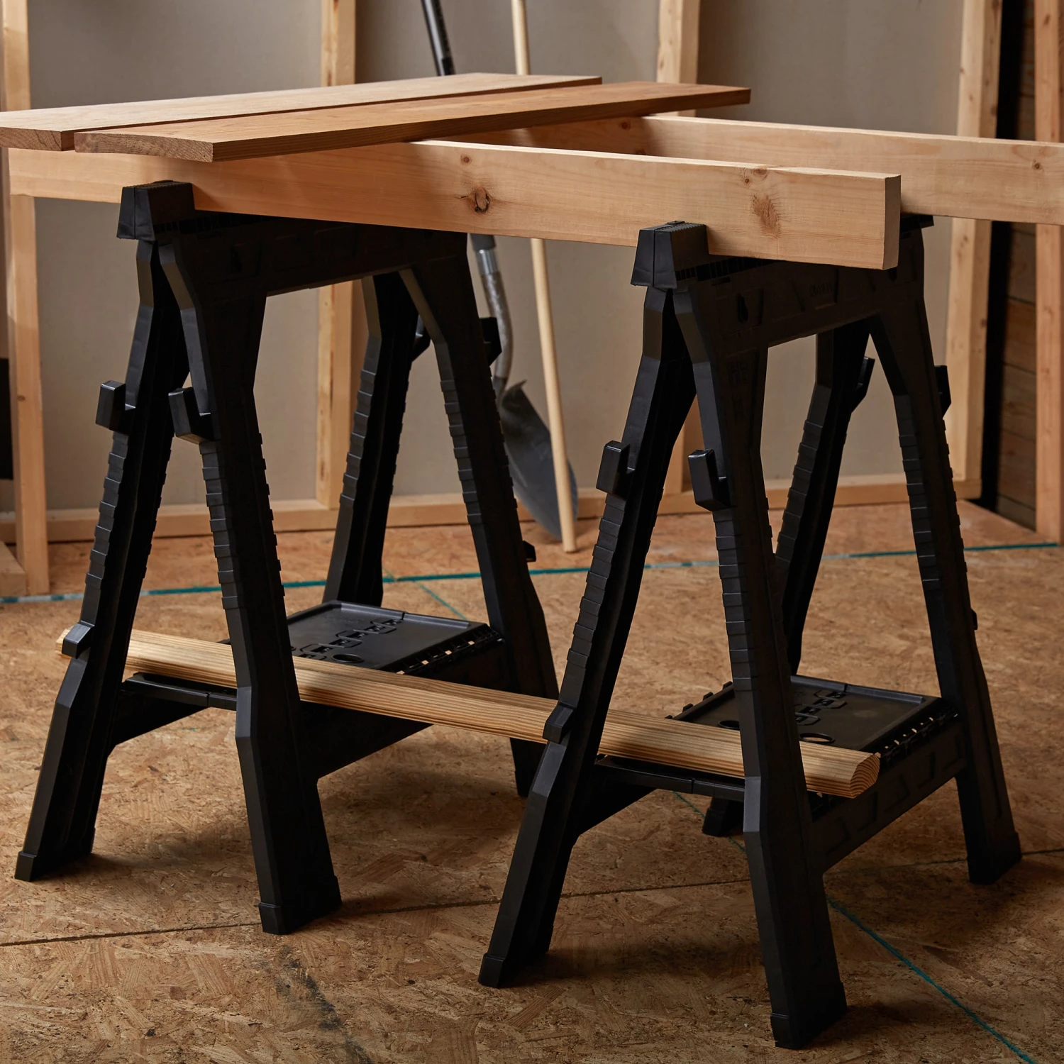 Kobalt 2-pack plastic saw horses provide a sturdy frame to safely support material for projects