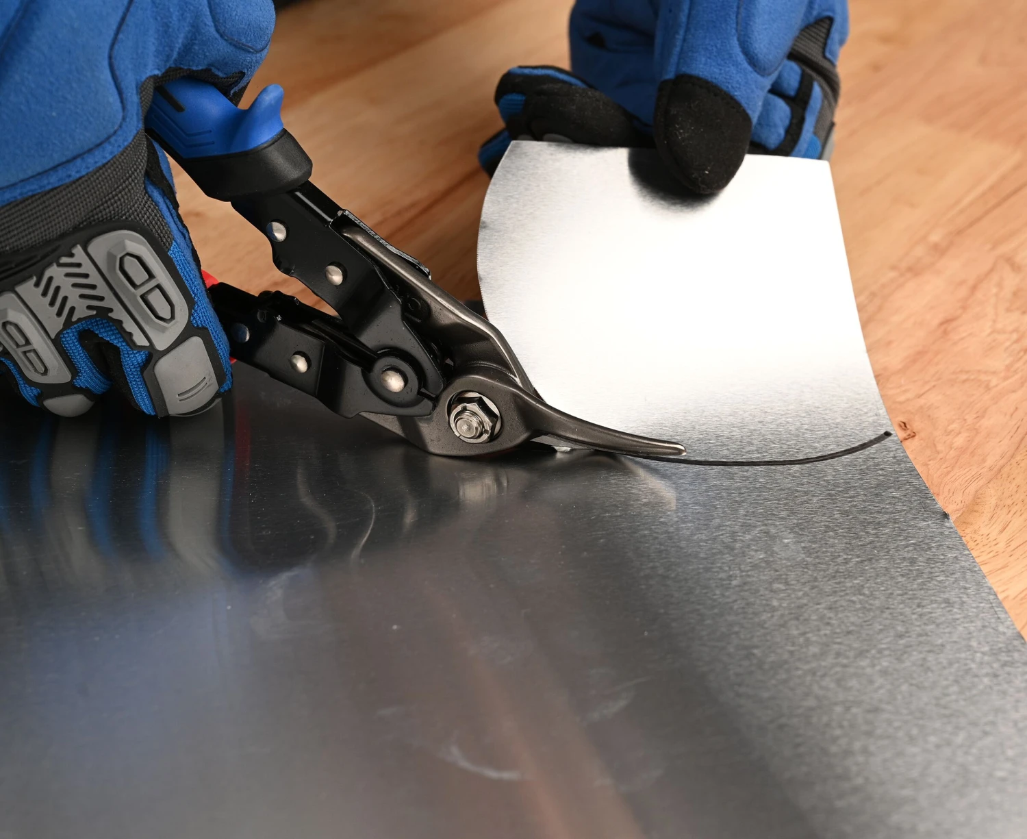 This set includes left, right and straight aviation snips. They are designed to cut various thicknesses of stainless and cold-rolled steel. Induction hardened cutting edge stays sharp longer. Blade markings for quick precise cuts. The metal lock secures the tool for storage and is easily operated with one hand. Ergonomic non-slip grips provide excellent control and easy cleaning.