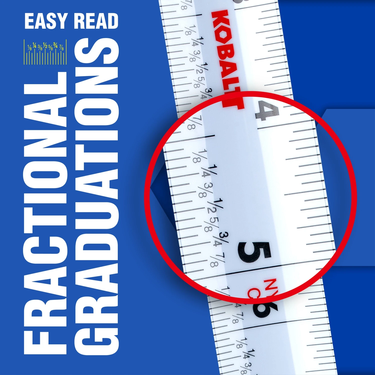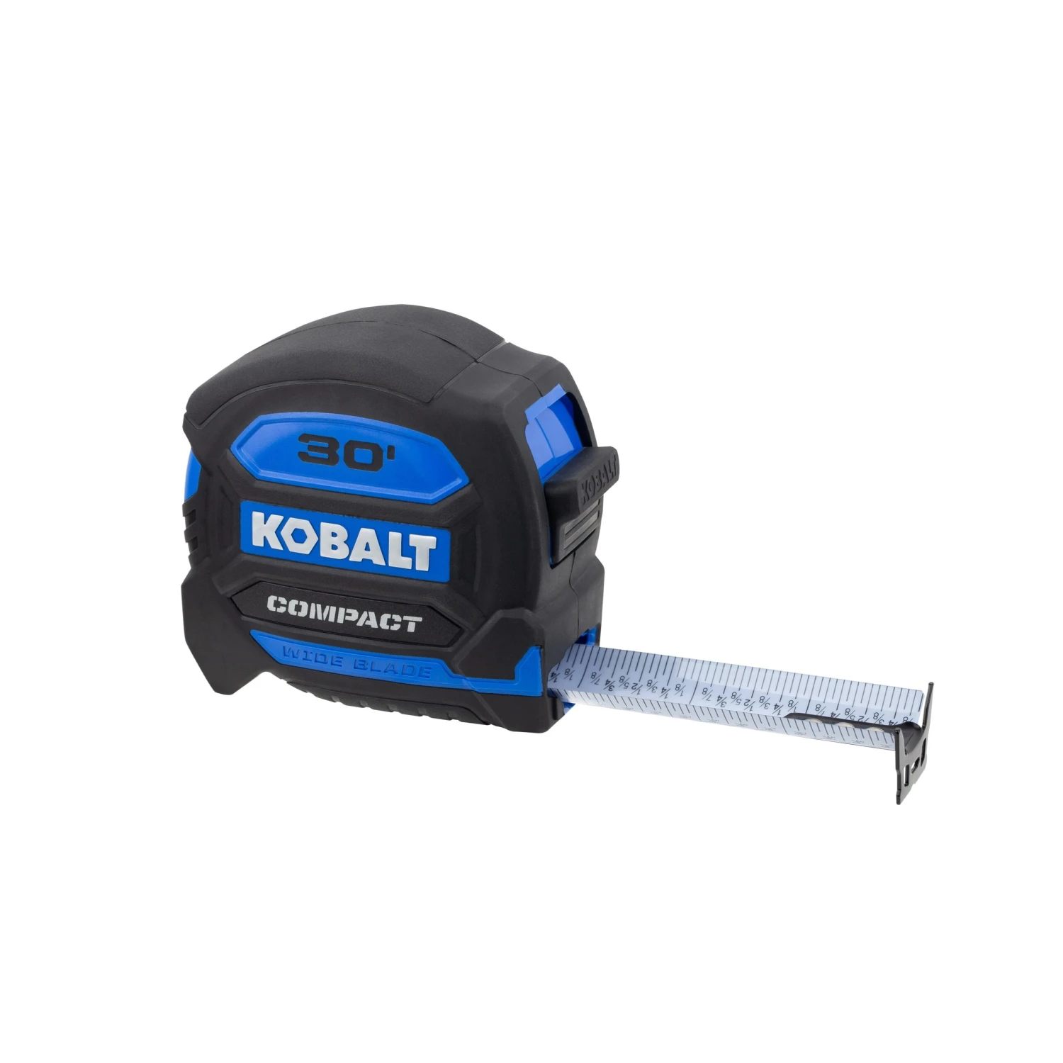Kobalt wide blade tape measures are the most compact design wide blade tape measures in it’s class. The wide blade allows for a 15ft reach and 12ft of standout. It also comes equipped with a white non glare blade and backside printing for precise measurements in any environment.