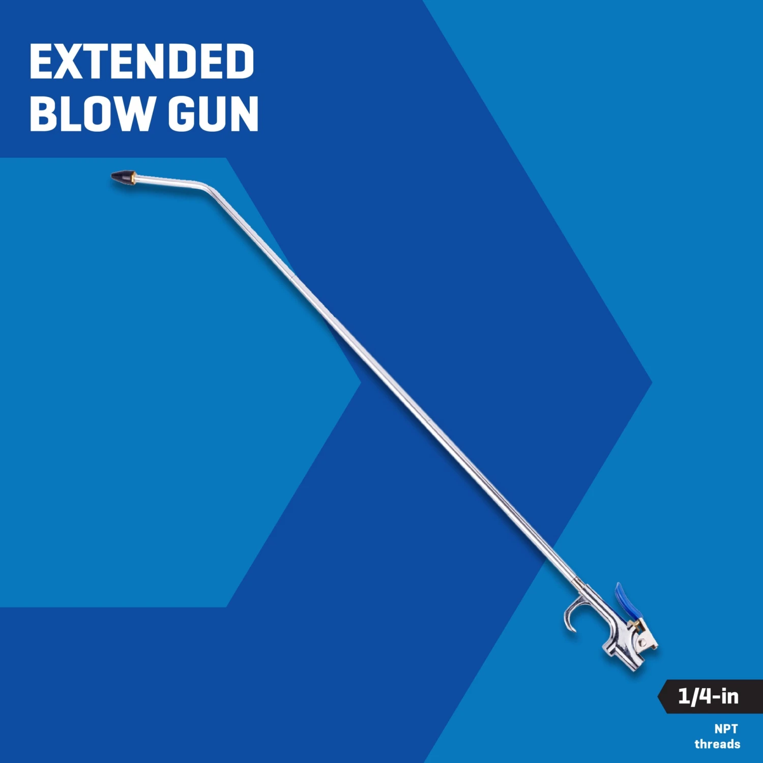 The Kobalt Extended Blow Gun comes with a standard blow gun and three extension sections, allowing this blow gun to be adjusted to 8-in, 16-in, or 24-in length, providing maximum reach and precision in hard-to-reach areas. It also includes 2 protective rubber tips, allowing use with or without the extension sections, and protecting delicate surfaces from damage. The trigger handle easily controls the airflow for maximum efficiency and precision.